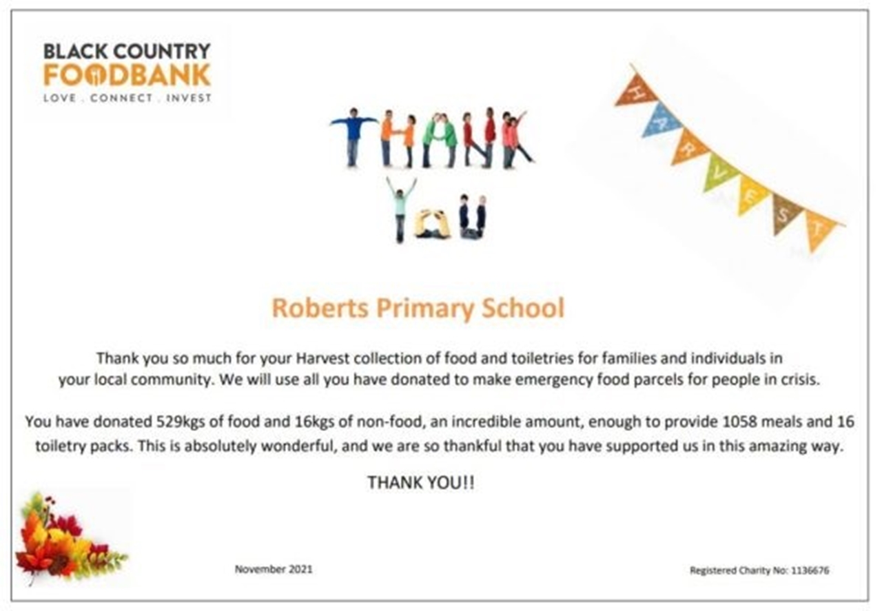 The Black Country Food bank have contacted us and said that we have donated 529kgs of food and 16kgs of non-food, an incredible amount, enough to provide 1058 meals and 16 toiletry packs.