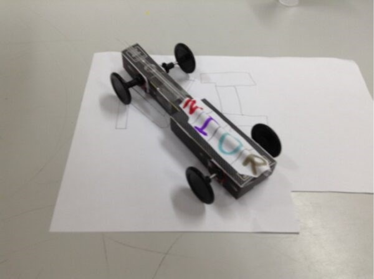 The children constructed a car and then used air pressure to launch the vehicle along the track.